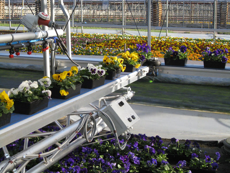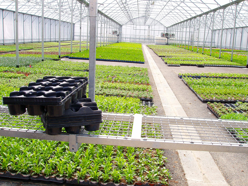 En s'appuyant sur la robustesse du rail installé pour les chariots d'arrosage, nous mettons à votre disposition des tablettes de manutention.